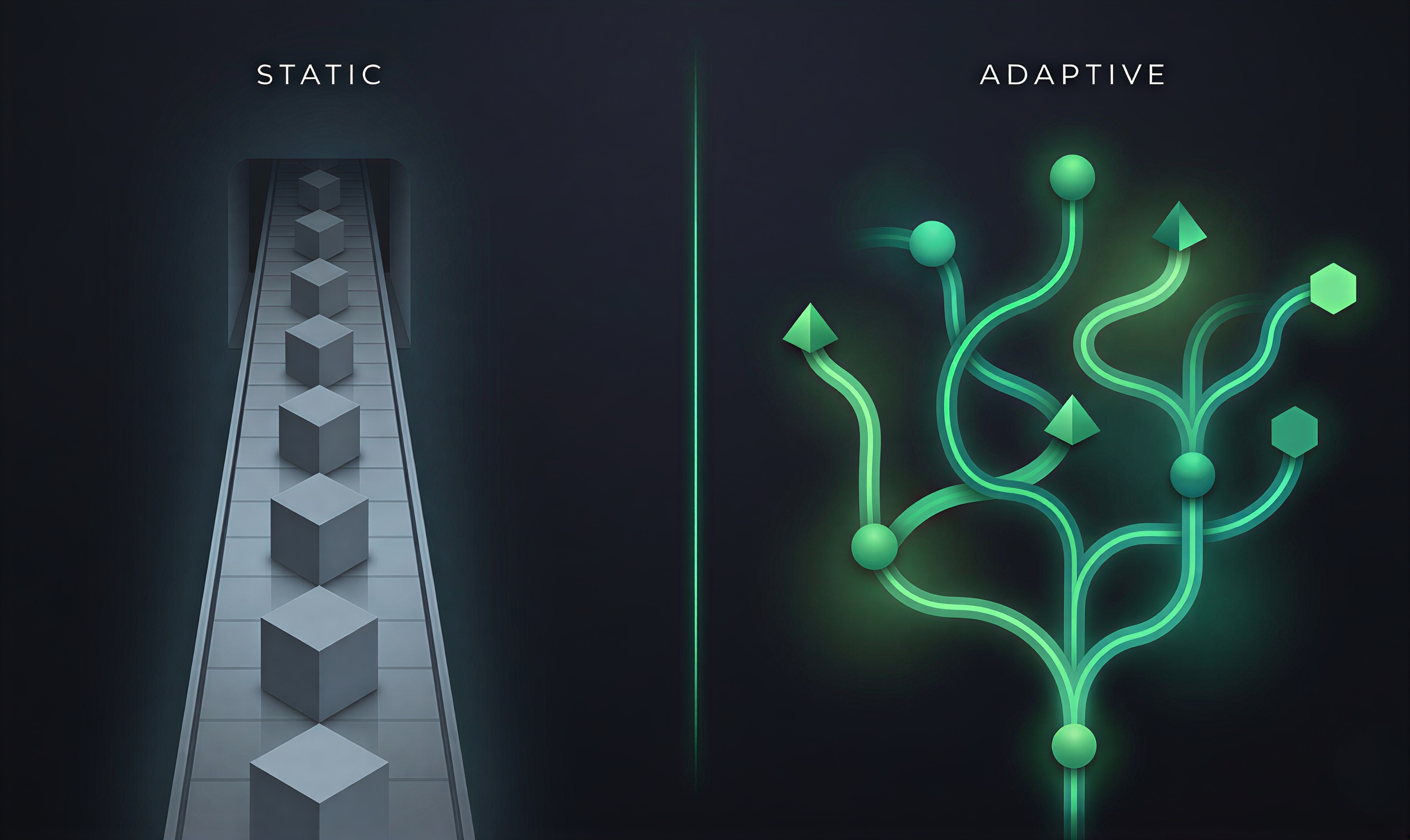 Most learning platforms say they personalize. What they really mean is that they route you into one of three fixed tracks based on a diagnostic test you took once. That isn't adaptation — it's slightly more elaborate sorting.